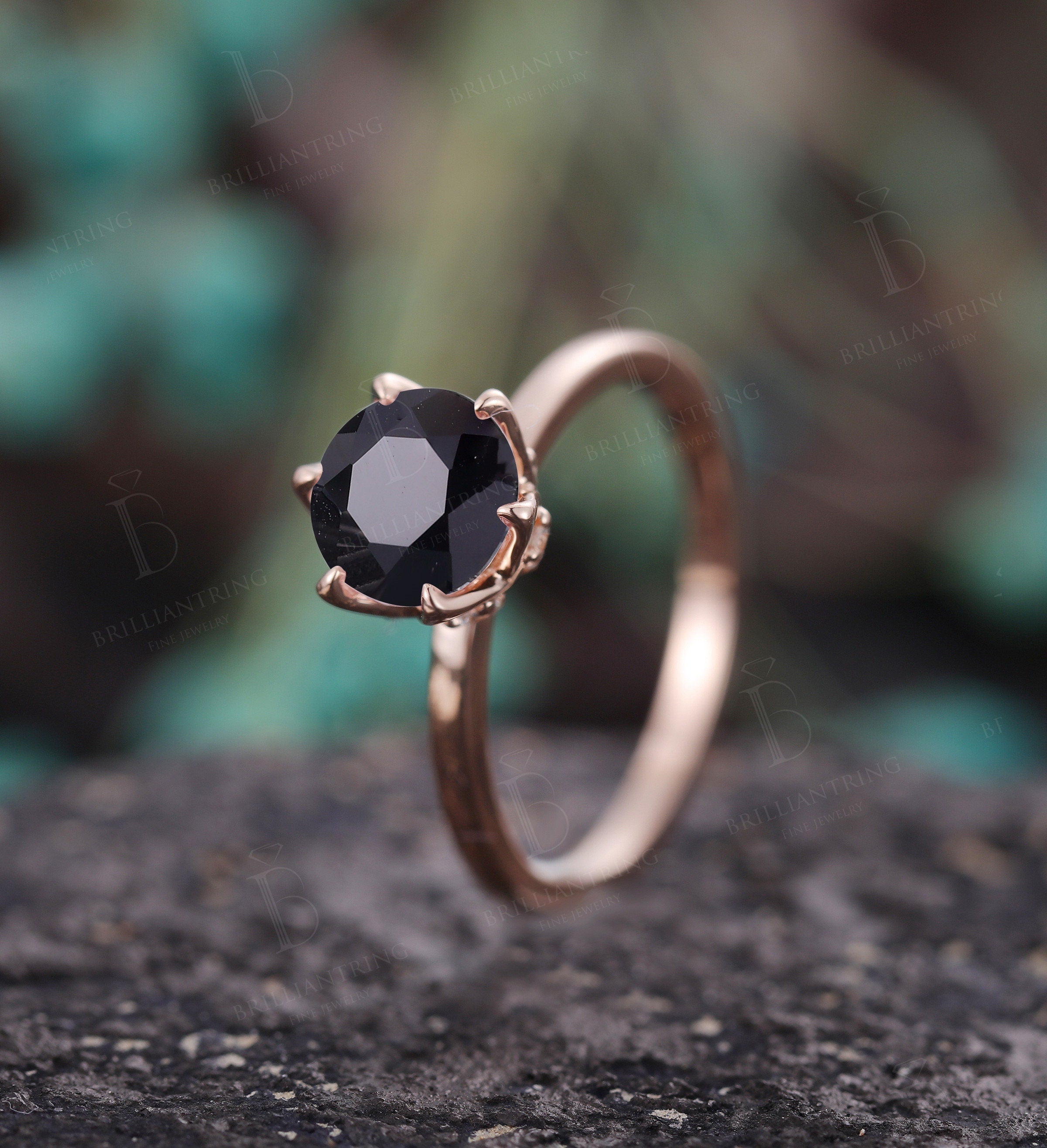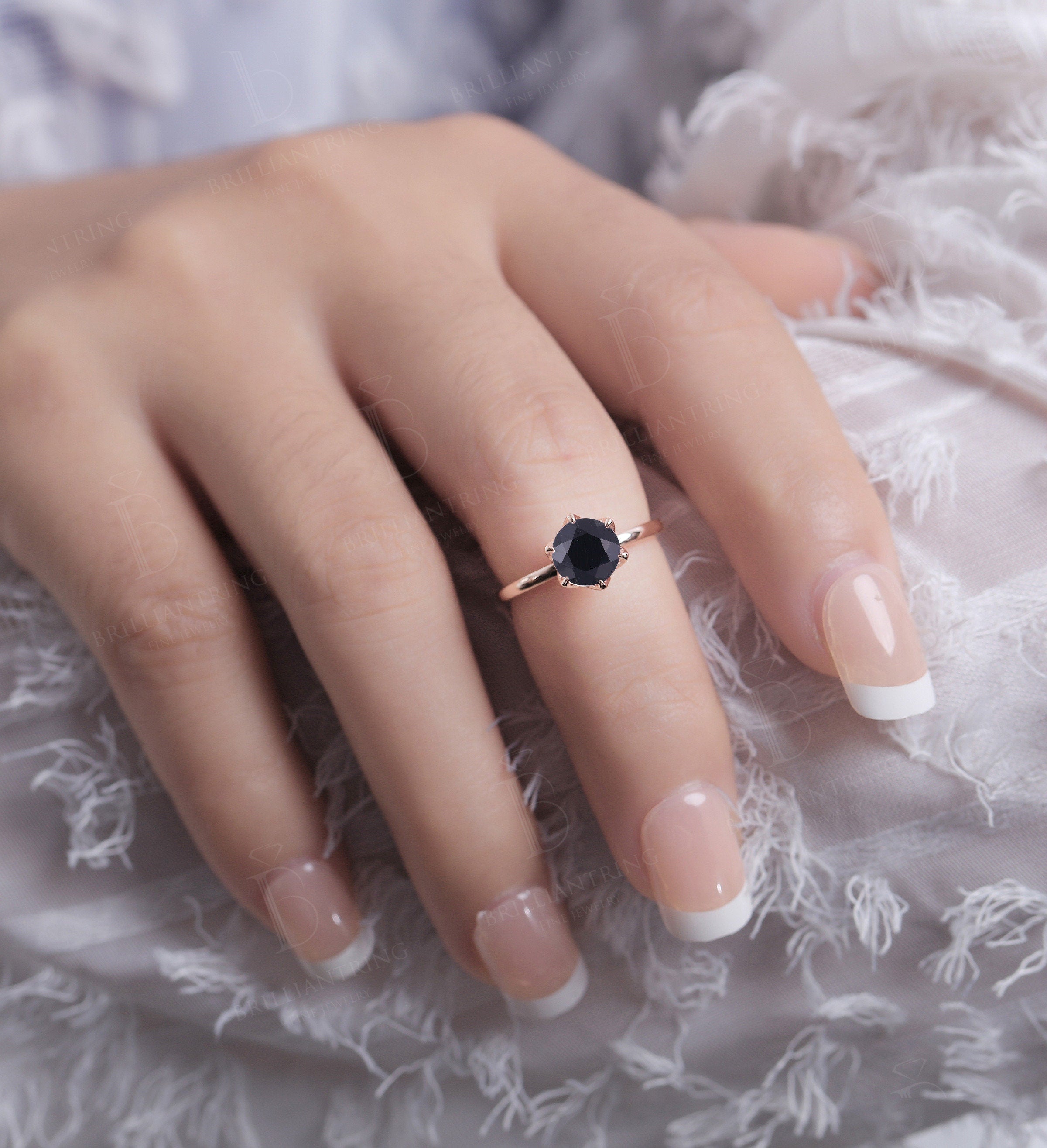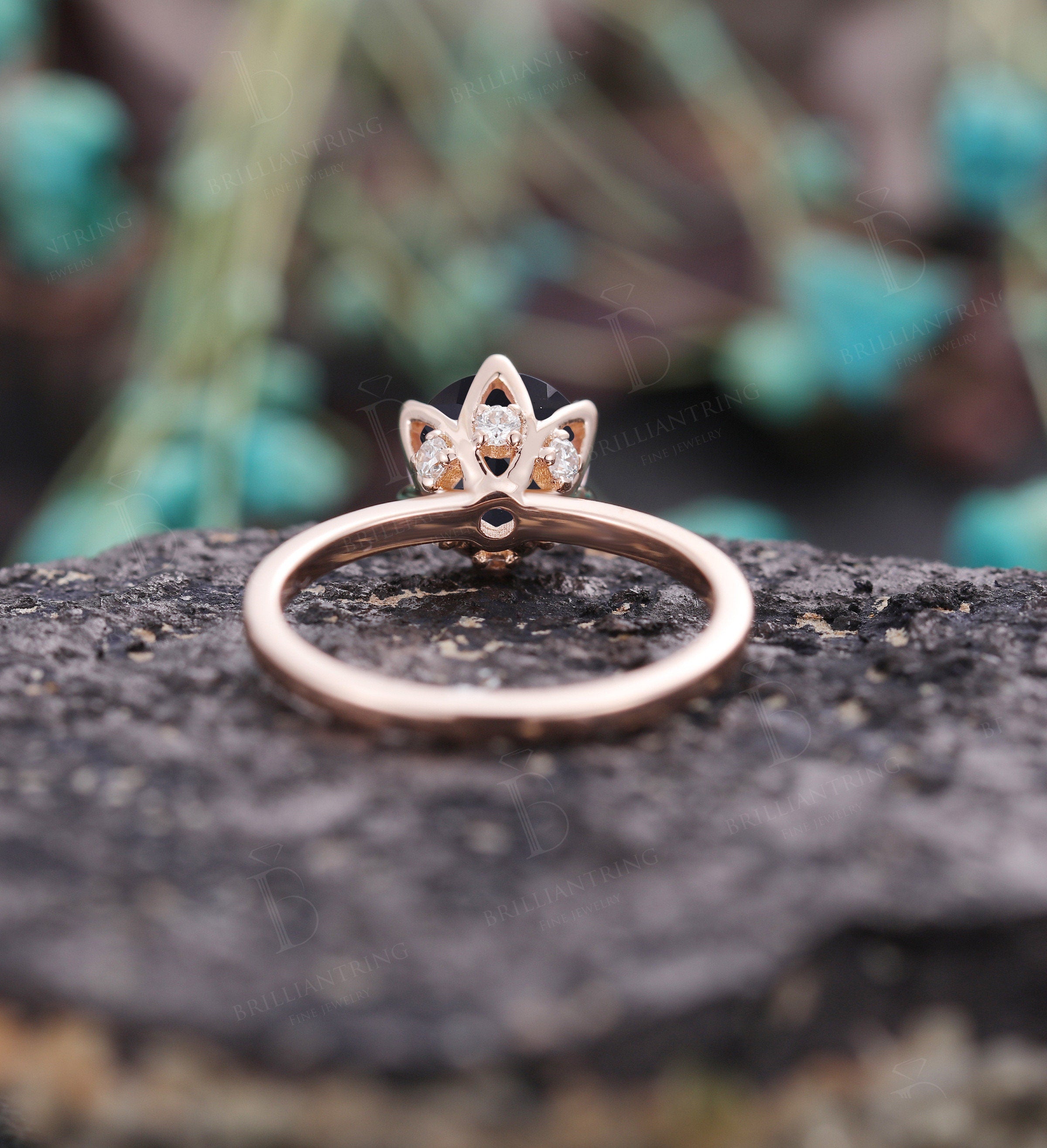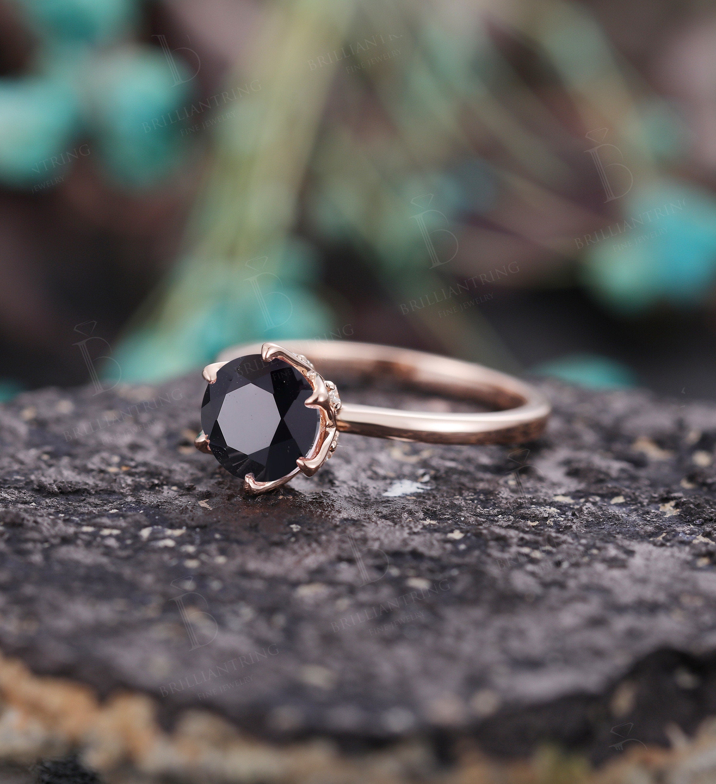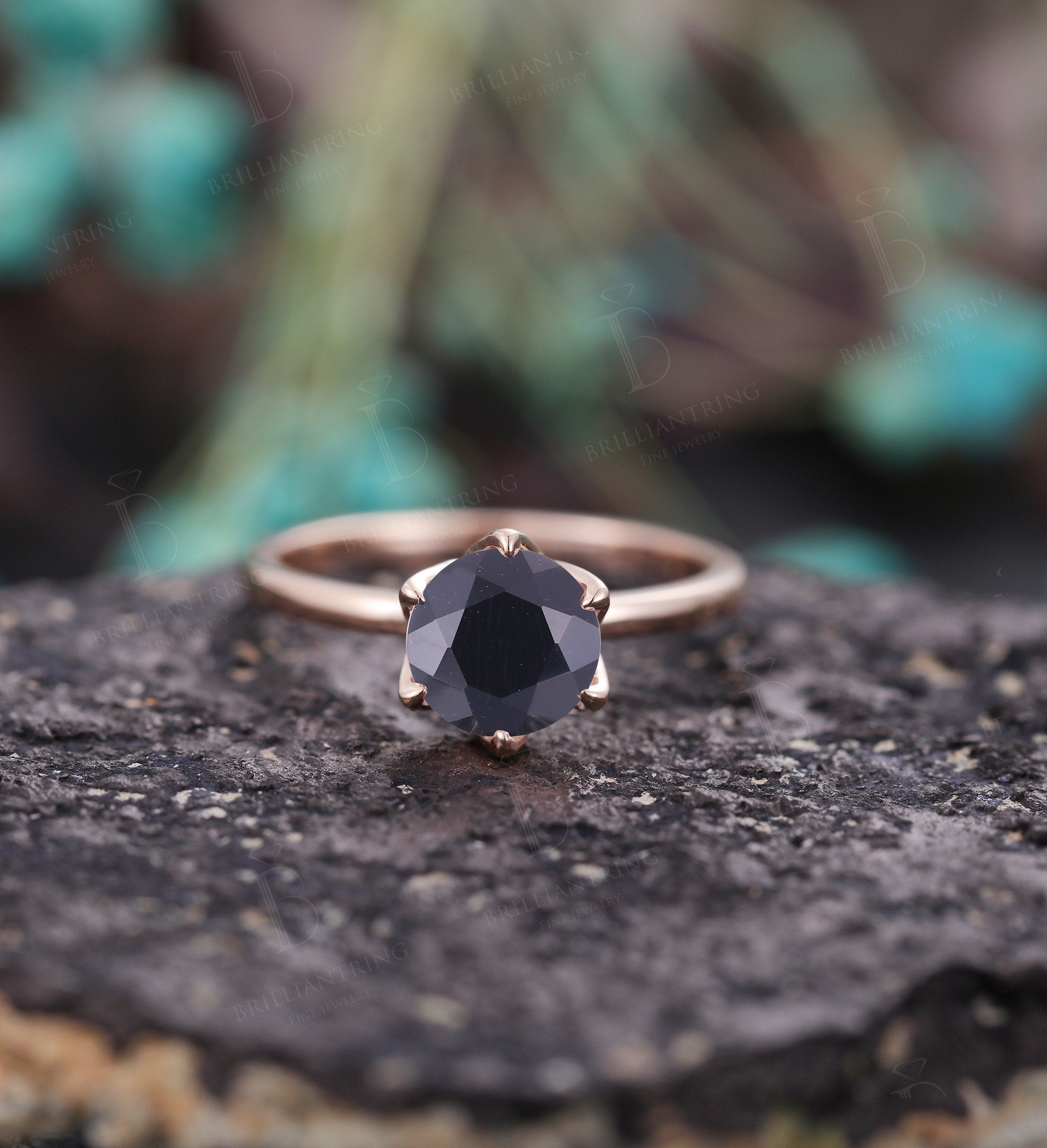 Center Stone - 6.5mm Black Onyx Side stones - about 0.06ct Moissanite |